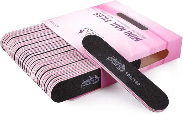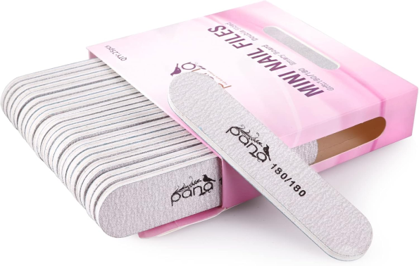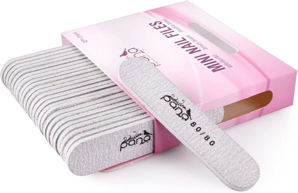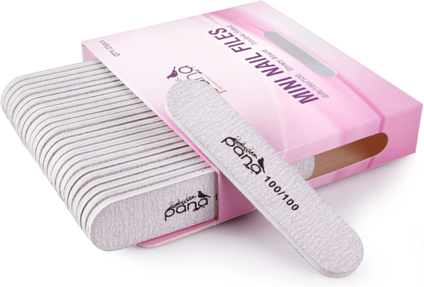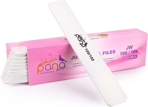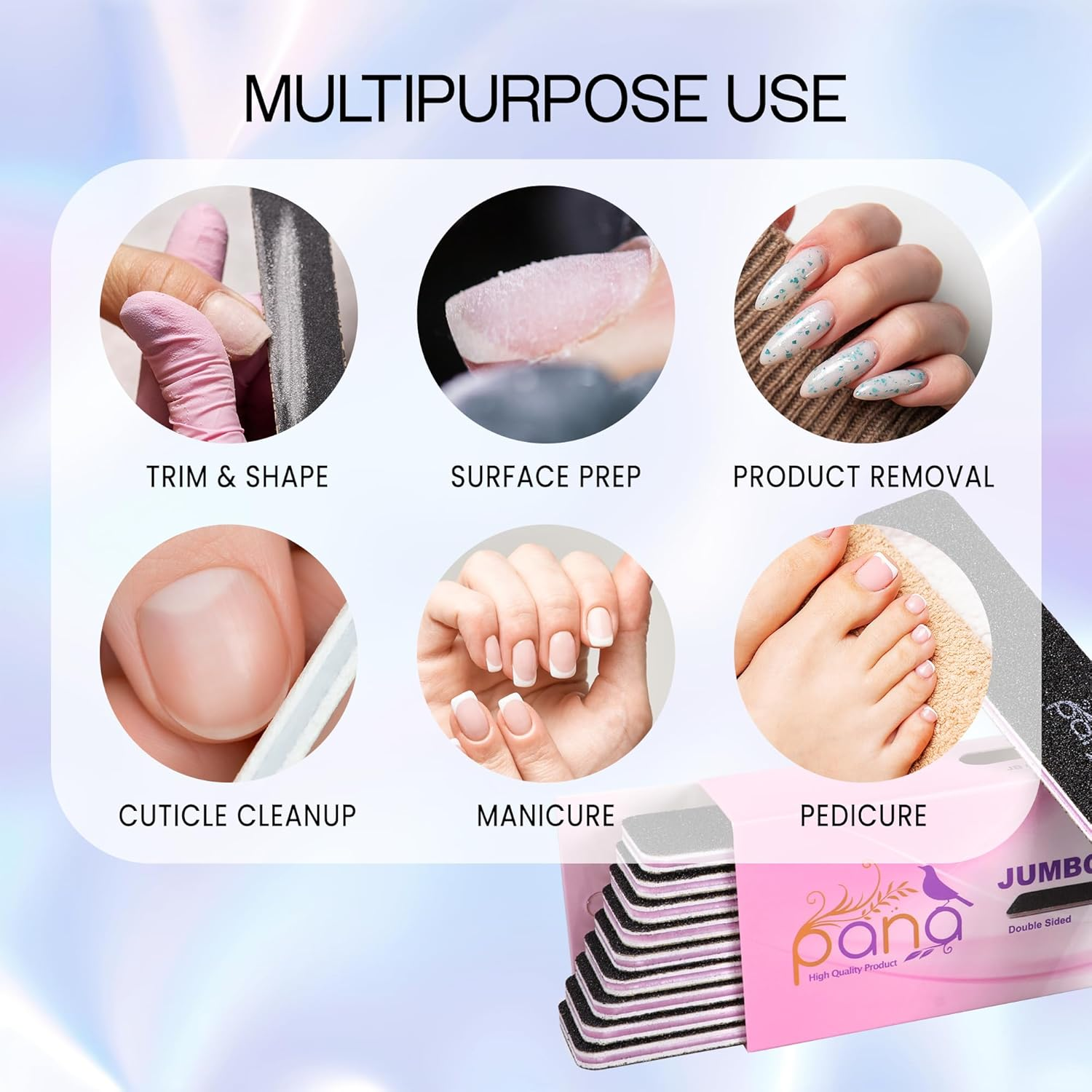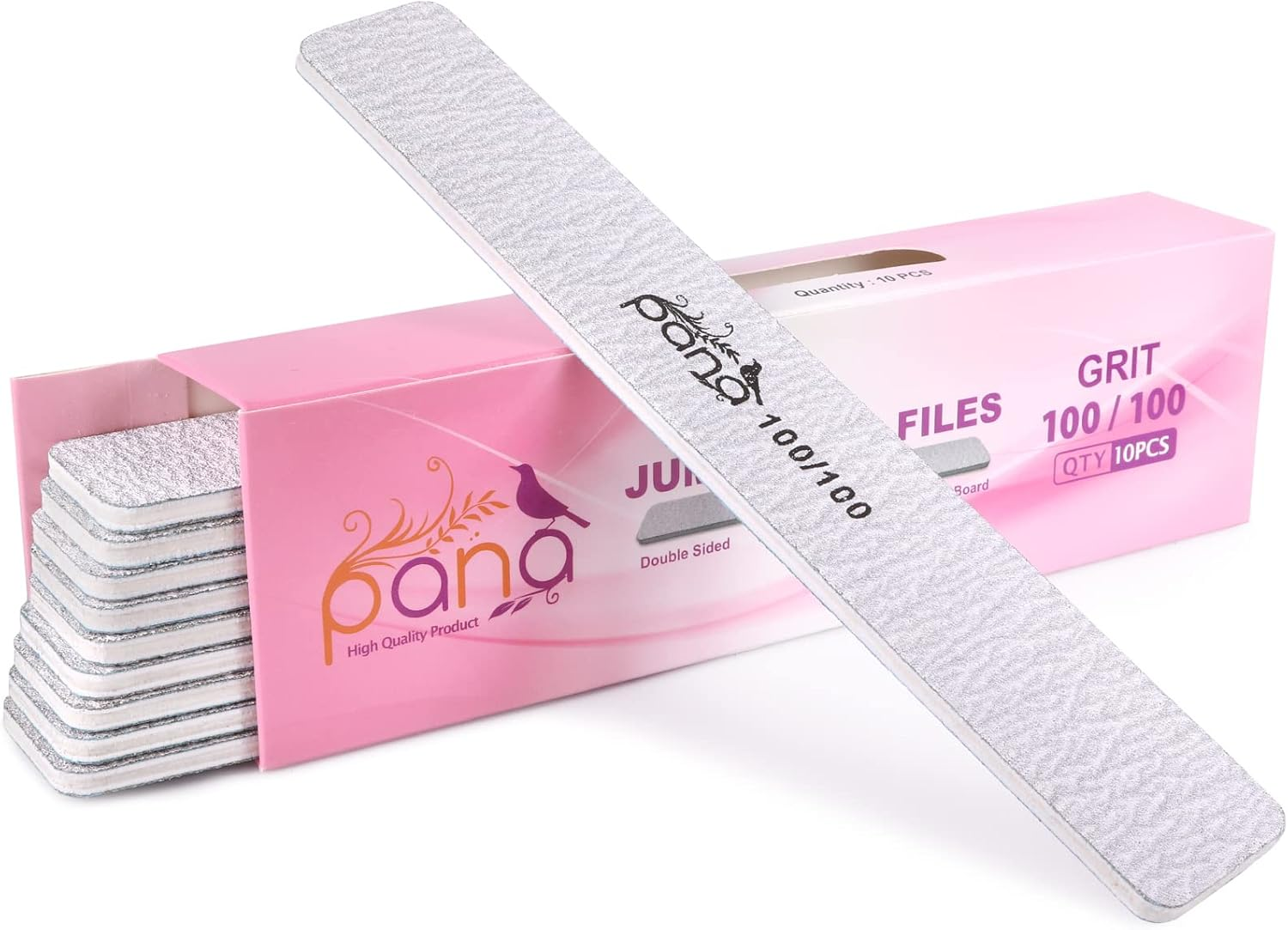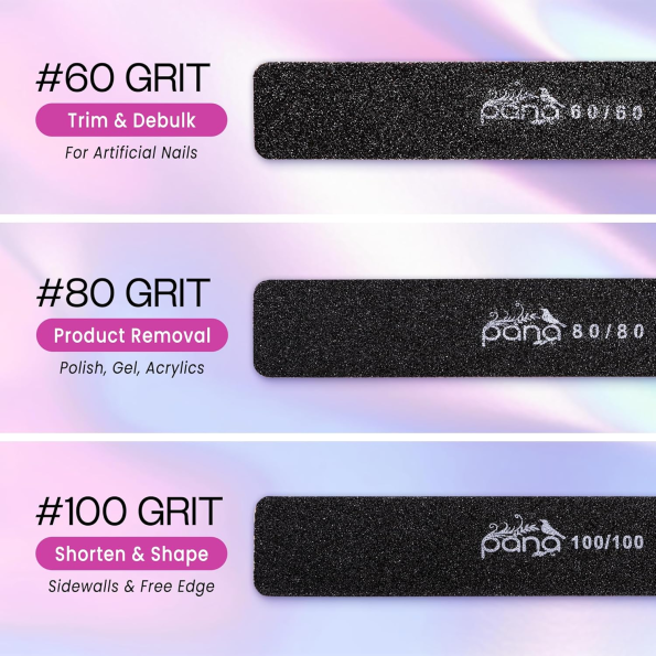 - PANA Jumbo Nail Files has a 80/80 grit size for a finest coarse to contour and shape the nails of medium thickness. With that said, 180 grit files are commonly used to shorten and shape natural nails or prepping nails before applying the product. Every nail tech knows the most important part of a manicure is the prep! This buffer is an essential to every nail kit, whether you DIY or make a stop at the salon.