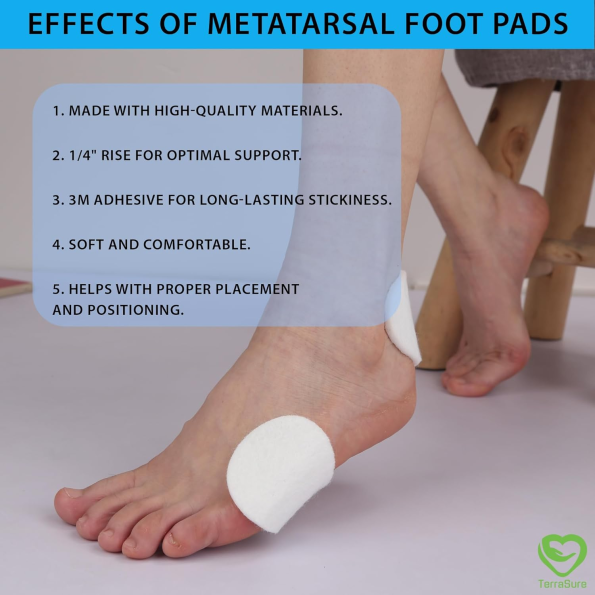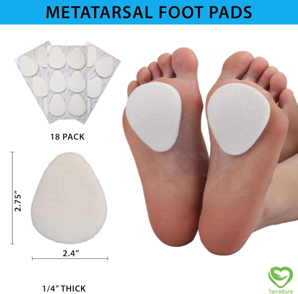1. Metatarsal Foot Pads placed under the balls of your feet can alleviate pressure and provide relief from discomfort. They are particularly beneficial for addressing issues like calluses, Morton’s neuroma, bunions, and other foot problems that arise from extended periods of standing or friction, ensuring enhanced comfort throughout the day.