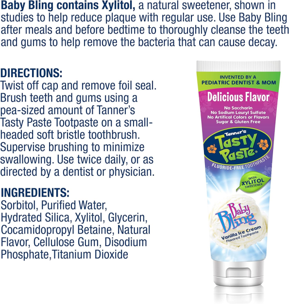 Baby Bling – Anticavity Fluoride-Free Children’S Toothpaste/Great Tasting, Safe, and Effective Vanilla Flavored Toothpaste for Kids (4.2 Oz.)