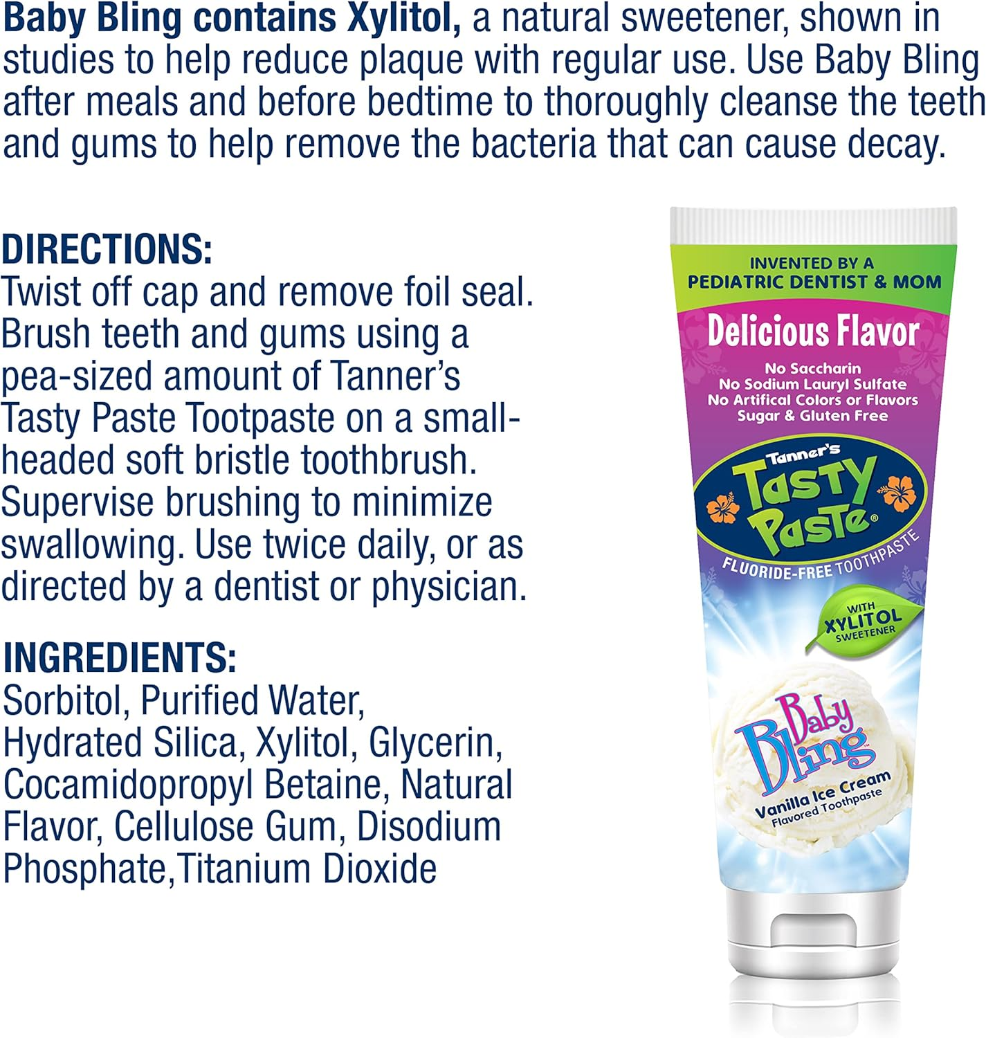 Baby Bling - Anticavity Fluoride-Free Children’S Toothpaste/Great Tasting, Safe, and Effective Vanilla Flavored Toothpaste for Kids (4.2 Oz.)