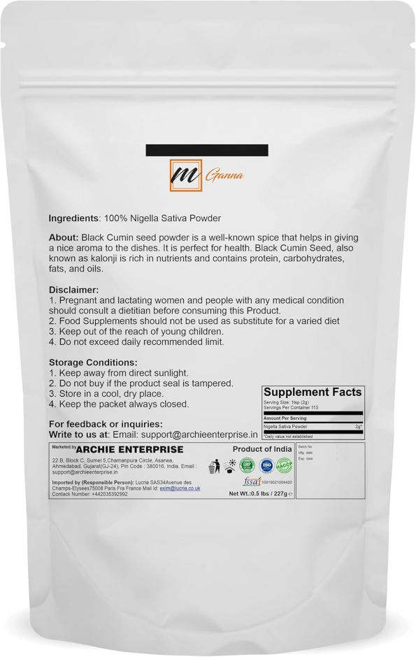 Black Cumin Seeds/Kalonji/Nigella Sativa Powder - 100% Pure and Natural 0.5 Lbs / 227 GMS