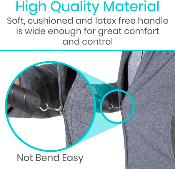 - πππ¦π¬ ππ₯ππ£ πππ‘πππ: The button hook has a flexible ribbed handle to provide a comfortable, non-slip grip. Perfect for arthritic hands, the latex-free cushioned handle is comfortably wide to allow for greater control when securing buttons or zipping pants, jackets or other clothing.