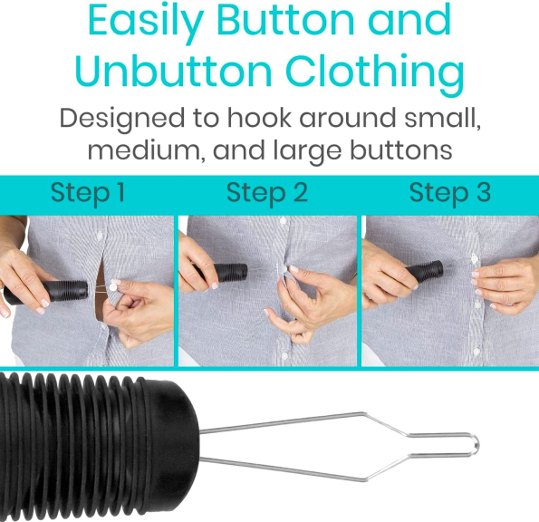 - πππ¦πππ¬ ππ¨π§π§π’π‘ πππ’π§πππ¦: The non-slip handle provides a comfortable secure grip while enabling independent dressing. For use on any size of button, the button hook makes buttoning clothing hassle free, perfect for those with limited dexterity and those suffering from arthritis or carpal tunnel.