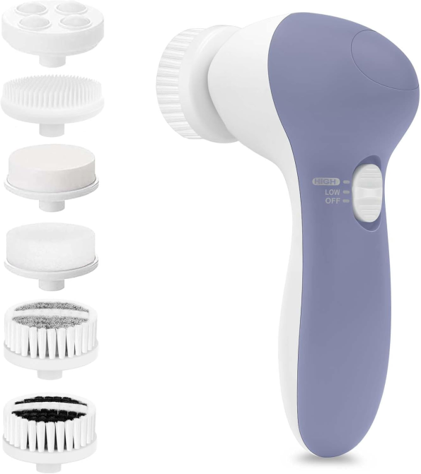 - 6 IN 1 FACE CLEANSING BRUSH SET – This 360-degree rotation exfoliating face cleanser brush greatly boosts the performance of your skincare regime. You can adjust any head so as to adapt to your skin needs.