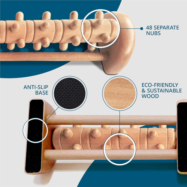 • Durable Wood: The sustainable foot roller massager with acupressure trigger nubs is made from sturdy wood and features anti-slip points at the base to prevent it from slipping to ensure maximum plantar fasciitis relief.