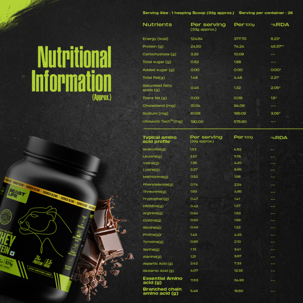 • No Toxic Traits: Low-carb protein, free from adulterants, additives, like emulsifiers, anticaking agents, thickening agents, etc.