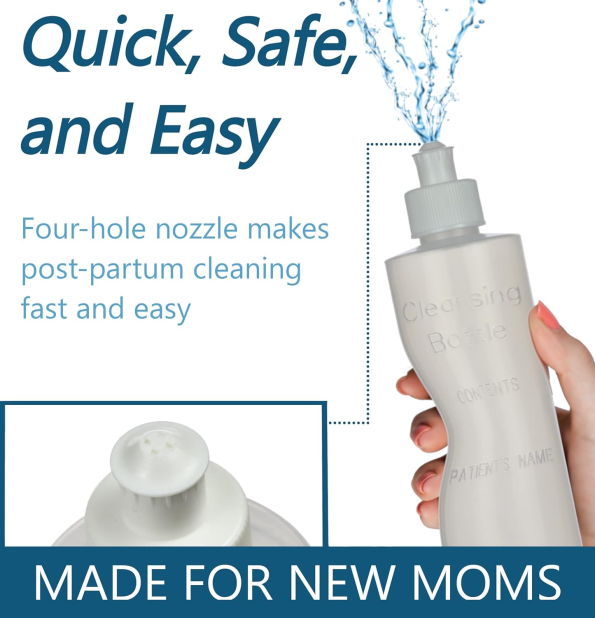 - GENTLE EFFECTIVE POSTPARTUM CARE: This cleansing bottle provides gentle cleaning of your perineum area after giving birth, providing soothing relief with a bottle squirt that’s more comfortable than toilet paper.