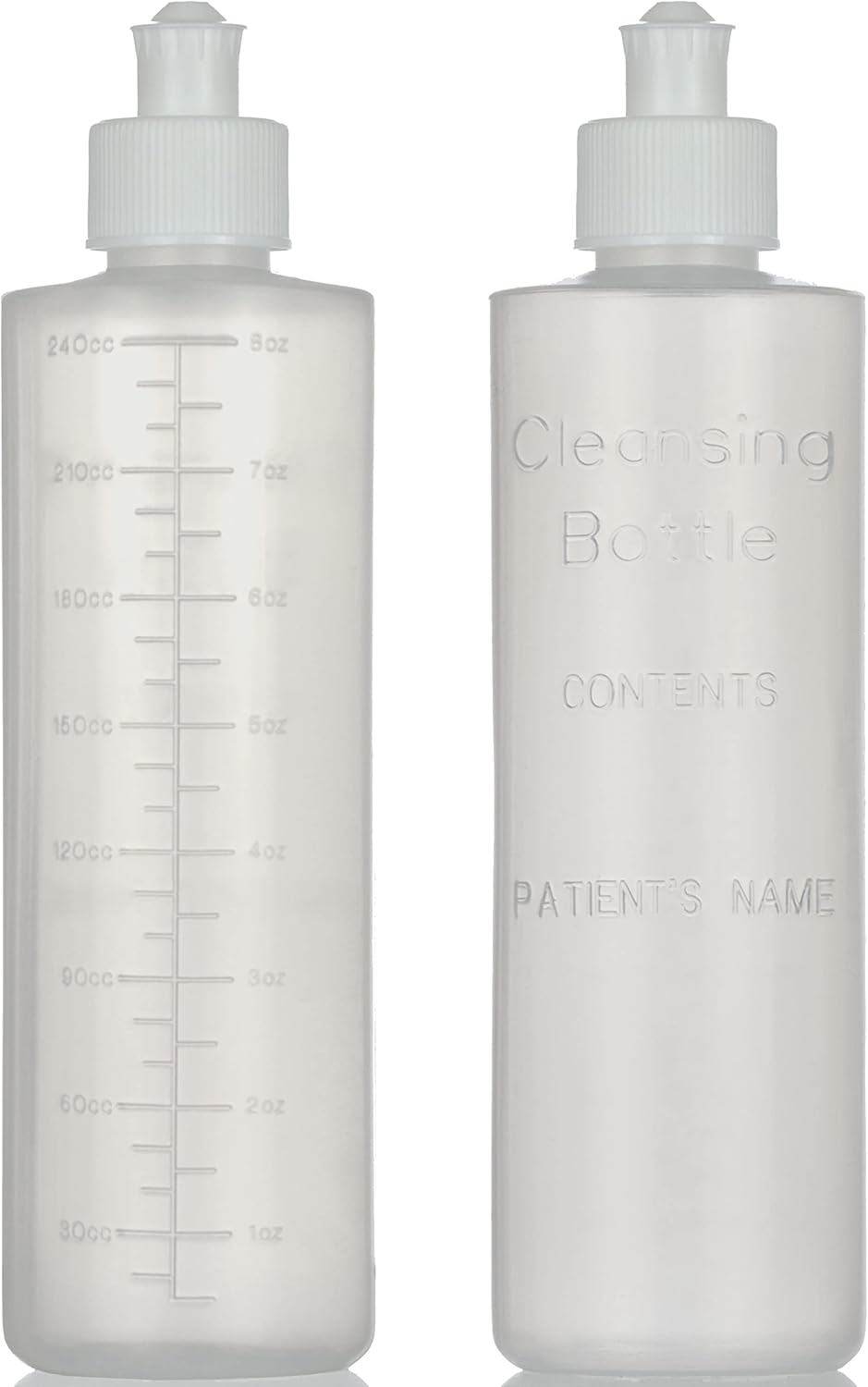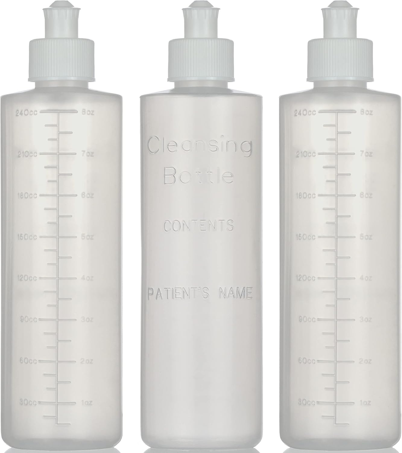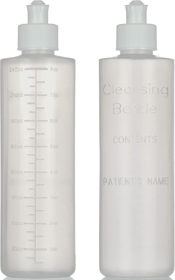 - PACKAGE INCLUDES: You will receive 2 Disposable, 8-oz, plastic perineal cleansing bottle with screw top
