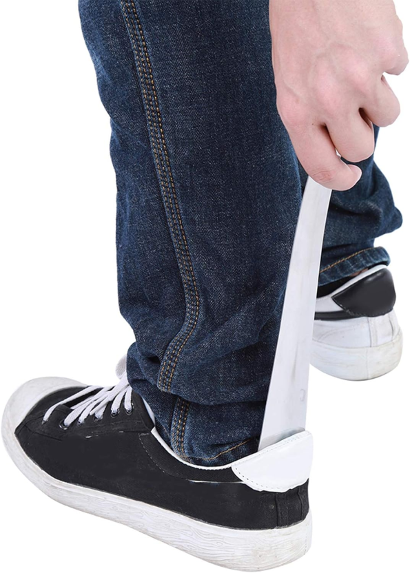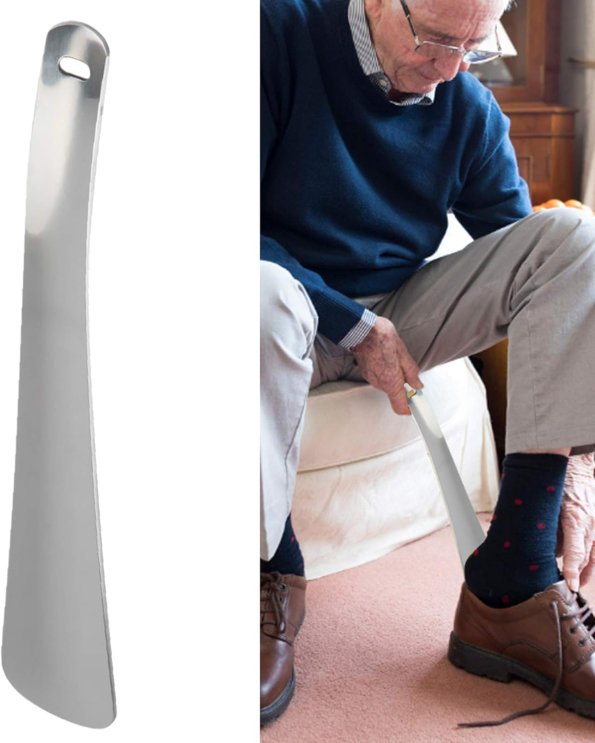 • [Easy Convenient to Use]: It is quite easy to use this Metal Shoe Horn, it has a 12 inches long handle that allows you to use it while standing or sitting, curve can help easily send you foot in shoes, also has a hook for convenient store and carry