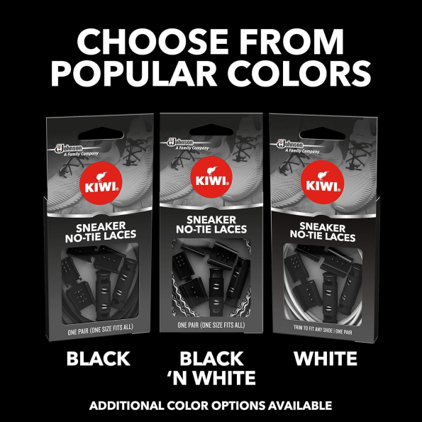KIWI Sneaker No-Tie Shoe Laces won’t knot you up or slow you down and save time with easy one-touch elastic. No-Tie Shoe Laces aren’t loose – they’re just as snug as tied laces without the hassle. No-Tie Laces fit everyone’s style, including adults, teens and young kids. Cut down on tie time while giving your sneakers a future-fresh look.