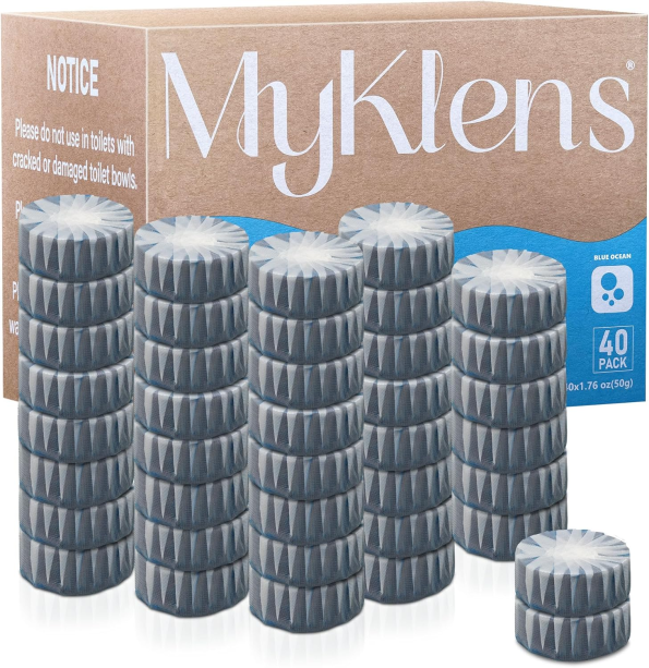 • Important Note: MyKlens toilet cleaner tablets can reduce the buildup of dirt in the toilet bowl, but are not replacement for toilet brush. Please clean the toilet bowl with a brush before the first time using our products. When the toilet bowl cleaner tablet dissolves completely and the BLUE/GREEN/PURPLE water turns transparent, please replace it with a new tablet.