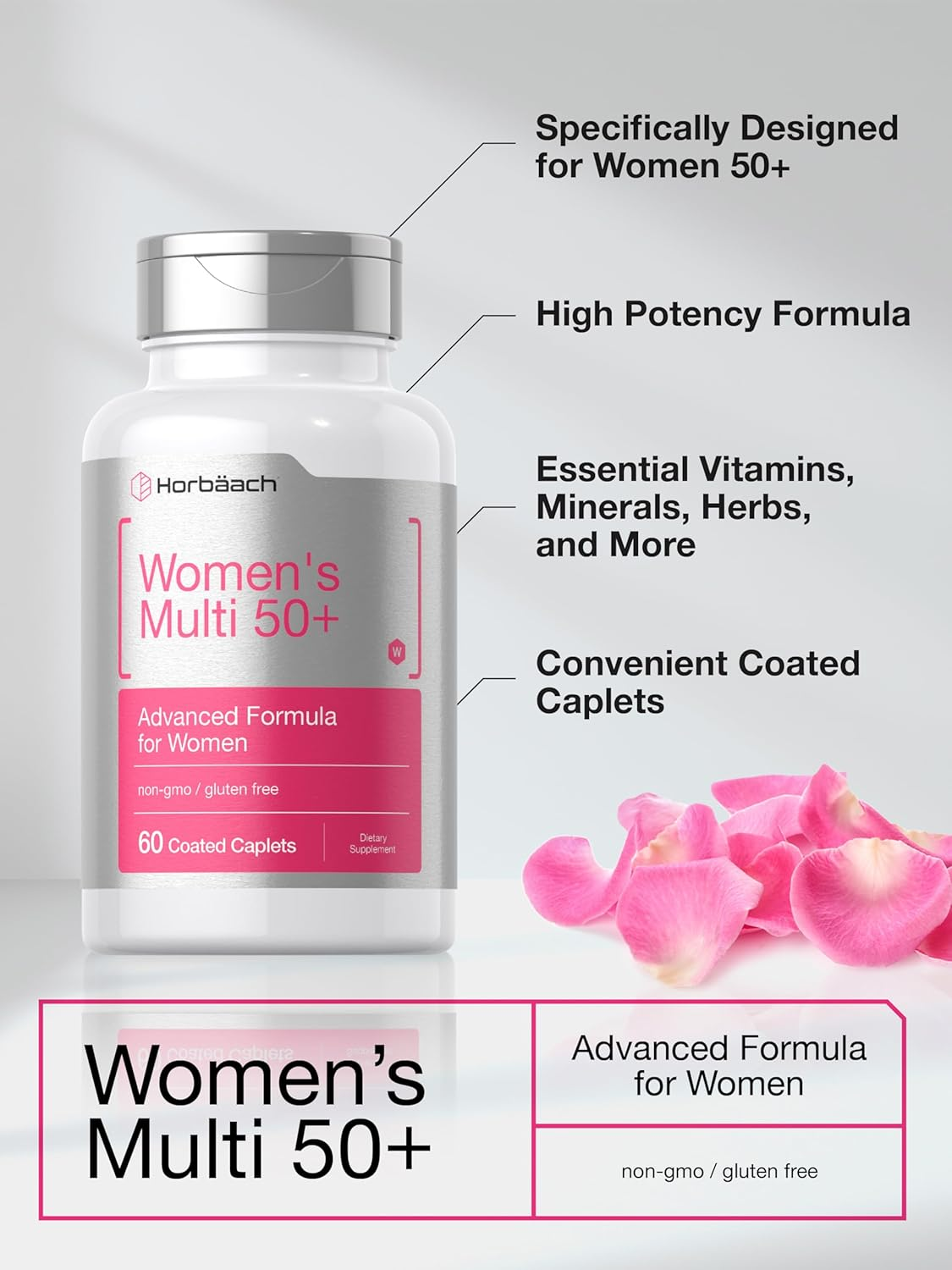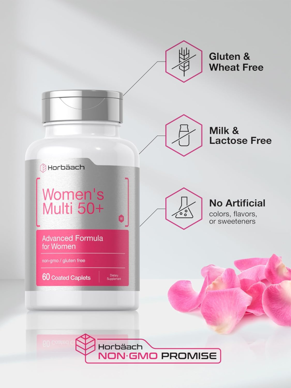 Women’S Multivitamin 50 plus | 60 Coated Caplets | Advanced Vitamin Formula | Non-Gmo & Gluten Free Supplement